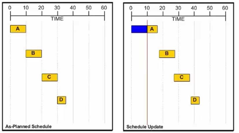 Reschedule همان Schedule Update است؛ یعنی بهروزرسانی برنامه زمانبندی با وارد کردن اطلاعات واقعی پیشرفت کار (Actuals) تا تاریخ وضعیت (Data Date)، بدون تغییر ساختار برنامه مبنا (As-Planned).